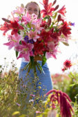 | Omschrijving | Dame met gemengde zomerbloeiers |